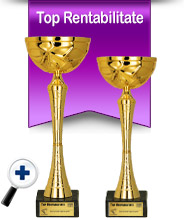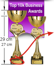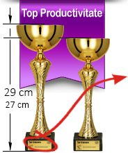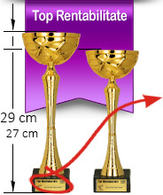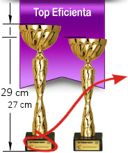 | Trofeele sunt personalizate prin gravură laser pe fața postamentului de marmură (denumirea firmei, locul ocupat, detalii clasament). | |